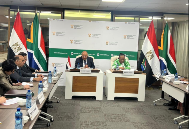 وجاءت التأكيدات المصرية – الجنوب إفريقية خلال مباحثات أجراها شكري، مع وزيرة العلاقات الدولية والتعاون بجنوب إفريقيا، ناليدي باندور، في العاصمة بريتوريا، أمس الجمعة، تناولت العلاقات الثنائية والمستجدات الإقليمية والدولية، وذلك على هامش أعمال اللجنة المشتركة بين مصر وجنوب إفريقيا.
